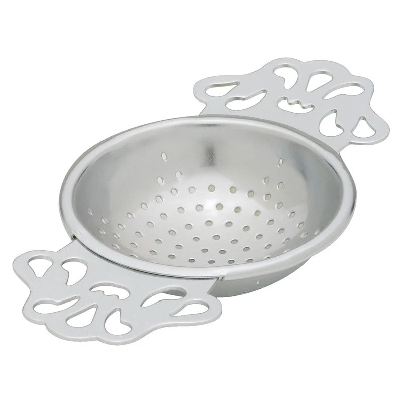 This elegant looking stainless steel tea strainer will fit daintily over your teacup. The holes of this strainer are not suitable for straining BOP style leaf teas or Rooibos teas.