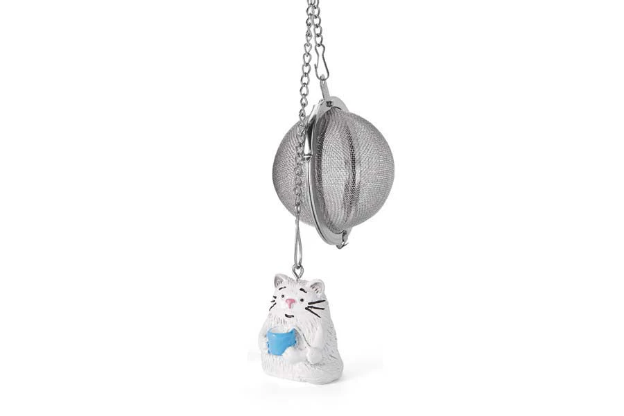Get comfy and snuggle up with the fluffy cat tea ball! This stainless steel 2-cup tea ball and chain is perfect for cozy tea drinkers and cat lovers alike.