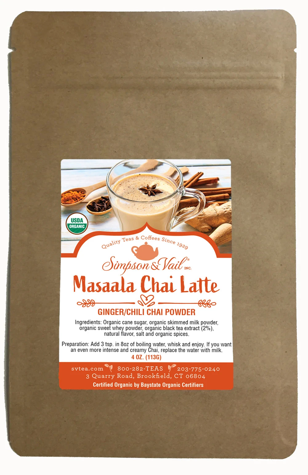 Ingredients: Organic cane sugar, organic skimmed milk powder, organic sweet whey powder, organic black tea extract (2%), natural flavor, salt and organic spices.