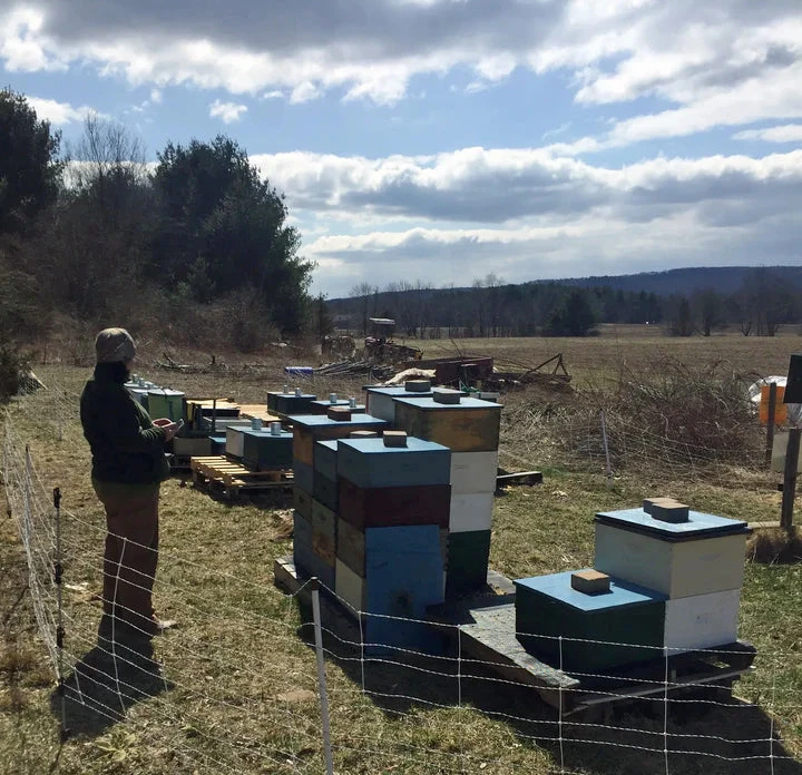 Hilltop Apiaries is a third generation family business. They maintain hives on 8 family-owned farms located throughout the Farmington Valley in Connecticut. In addition to their own pure wildflower honey that they extract, they also partner with other beekeepers who follow the same practices of responsible beekeeping. We’re grateful that they provide pollination services with their partner, Farmer’s Bee, to several orchards in the area.